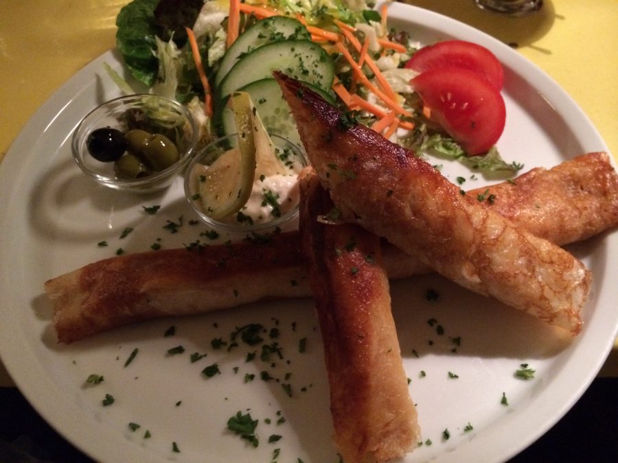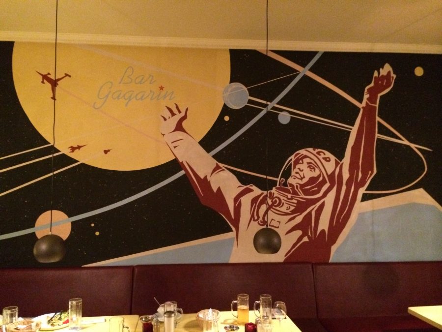 Le soir, rendez-vous à 19h00 devant l’hôtel pour participer un autre rallye, gastronomique cette fois-ci ! On traverse la ville de par en par pour savourer des plats succulents dans différents restaurants originaux de la ville. On commence par le Gagarin, un restaurant russe à la décoration bien typique où l’on peut savourer des spécialités du pays. Pour ma part, une préparation à base de saumon roulée dans des feuilles de bric croustillantes… Mmhh…