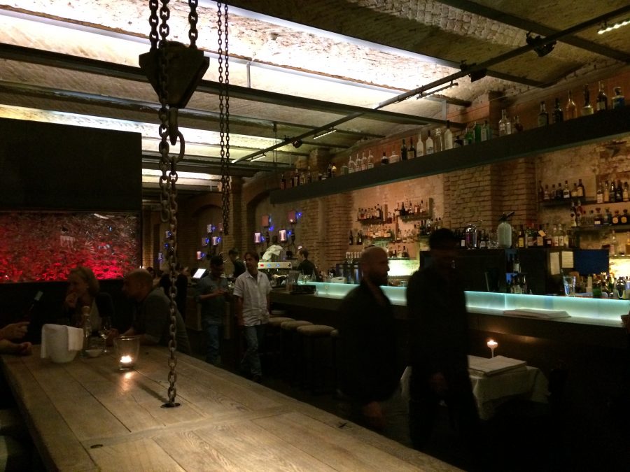 Et pour terminer cette découverte culinaire nous prenons le déssert dans un restaurant unique en son genre, le Sage. Il est situé dans le quartier de Kreuzberg dans un ancien bâtiment industriel qui longe la Spree, le fleuve qui traverse Berlin. Gros coup de coeur pour cet établissement tendance à la décoration 100% industrielle, et ce jusqu’au toilettes, vraiment insolites…