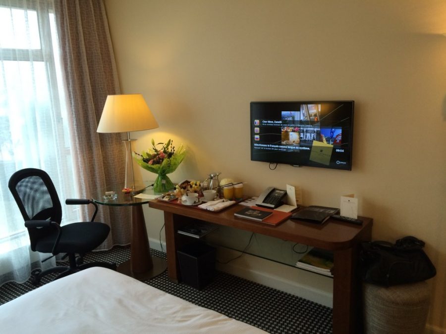 C’est Nicolas, le responsable marketing de l’hôtel qui est venu nous accueillir en personne à la gare pour nous accompagner à l’hôtel. Nous avons découvert notre belle chambre située au dernier étage du Warwick, dont la grande terrasse offrait une vue panoramique sur la ville, sur le lac, le fameux jet d’eau et sur le massif des Alpes.