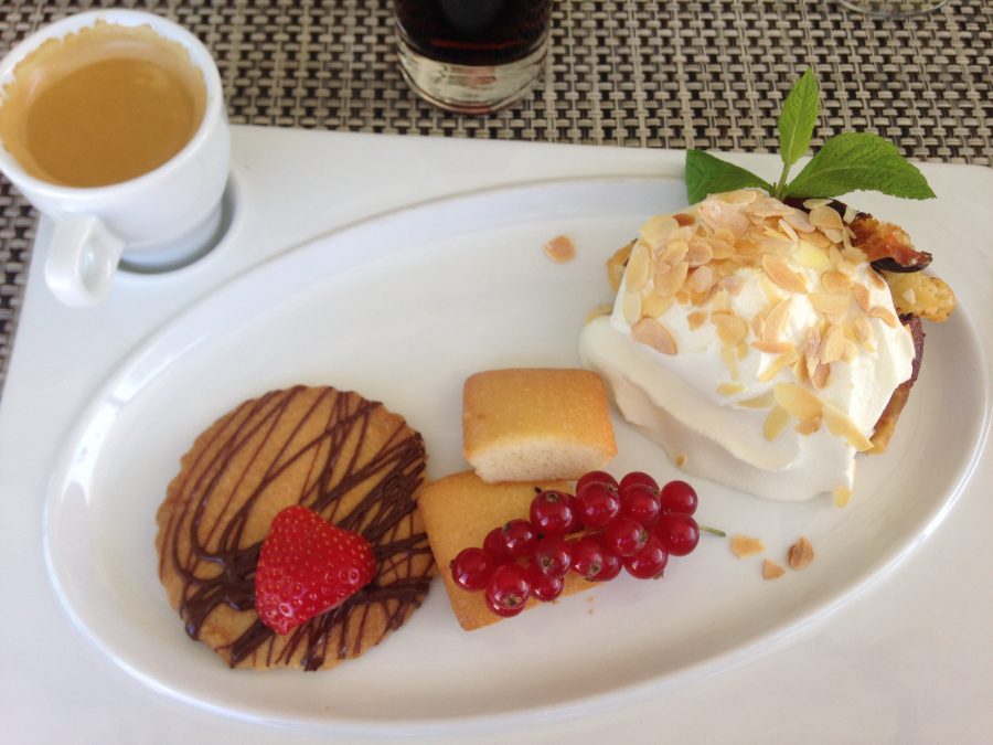 Cette première soirée, nous dînons au restaurant de l’hôtel « Les Terrasses du Golf » dans un cadre élégant et chic. La salle principale est volumineuse et donne sur une grande terrasse de surface identique qui surplombe le golf de Barbaroux. Le personnel est accueillant, sympathique et fournit de nombreux conseils quant aux choix des plats et des vins. Tous les vendredi soir, le chef suggère un plat spécial, selon les arrivages du marché. Ce soir là comme tous les Vendredis c’est Linguine à la langouste, un bonheur ! Pour accompagner ce mets succulent, rien de tel qu’un vin blanc du château de la Margillière Hautes Terres, le même que nous avons dégusté l’après-midi même.